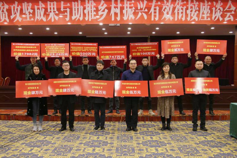 座谈会上,36家省民营企业、商会为平武乡村振兴献计献策,捐赠捐物,必一运动集团事长杨钢现场捐赠了现金6万元,为平武县脱贫攻坚和乡村振