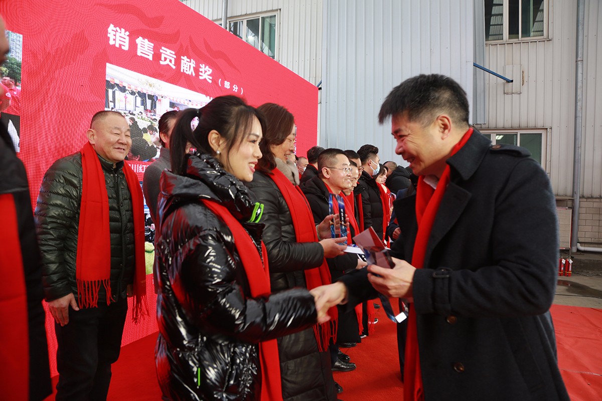 之后,公司为2021年度销售成绩突出和对必一运动事业做出巨大贡献的经销商进行了颁奖。共有52名来自全国的经销商代表获得了殊荣,董事长杨钢携集团公司领导和电子公司领导,对获奖的经销商分别进行了颁奖。代表着荣誉的奖杯,是对他们过去一年成绩的肯定,更让所有人对未来的发展更有信心和动力。